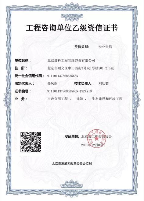 在順義建投公司黨委的堅強領(lǐng)導(dǎo)下,鑫科公司全體員工堅持不懈,在各個專業(yè)的積累持續(xù)提高。2021年12月3日,在原市政公用工程、建筑兩個專業(yè)基礎(chǔ)上取得了生態(tài)建設(shè)和環(huán)境工程專業(yè)的乙級資信。